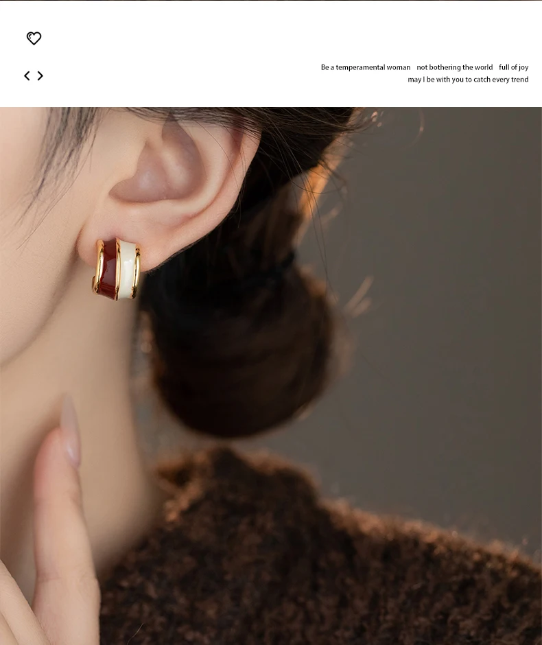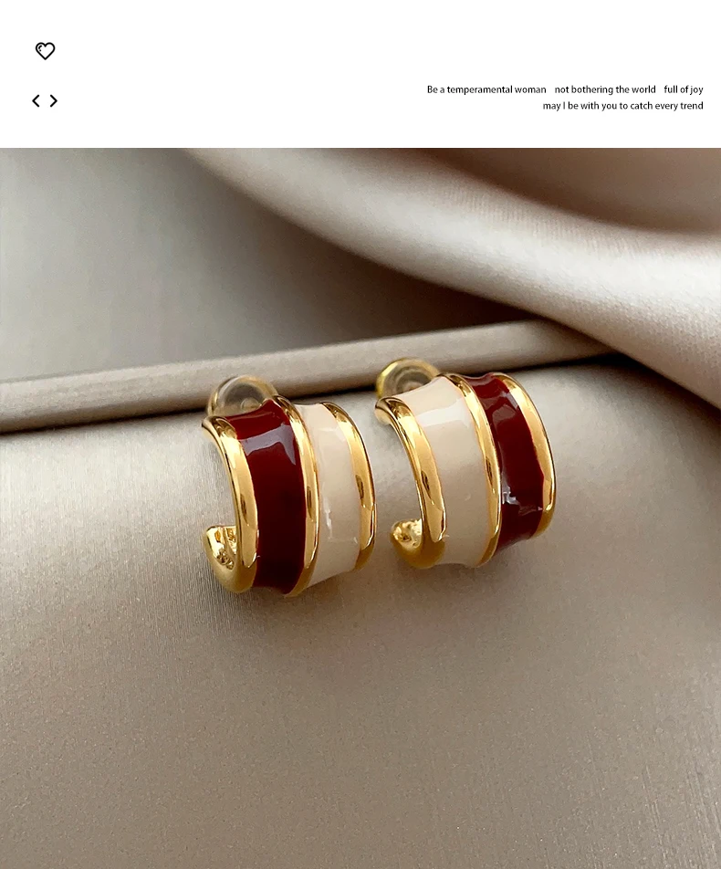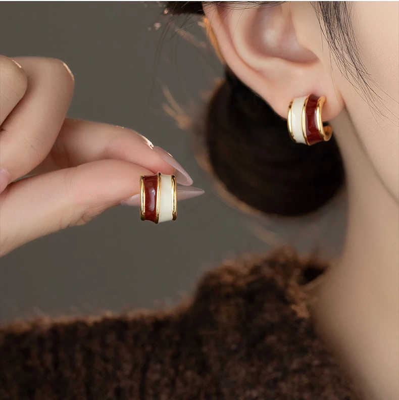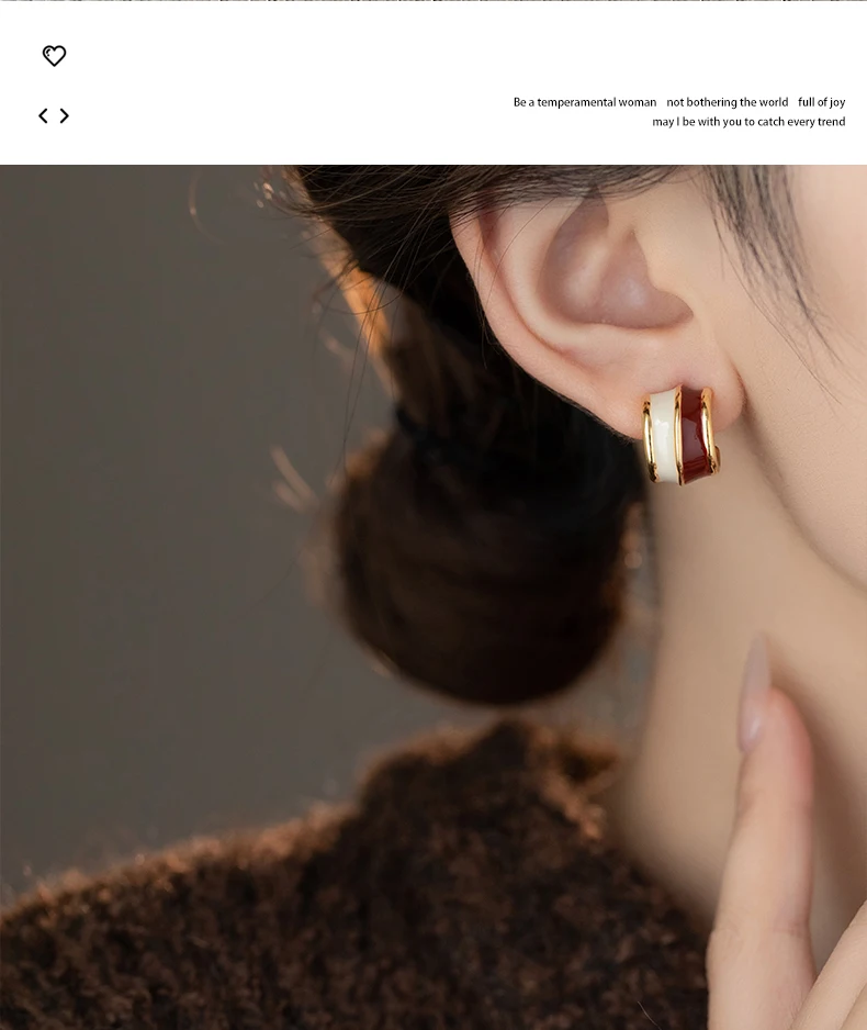 • 2024 Vintage style Wine red Contrasting Half Circle Enamel Earrings For Womens Elegant Temperament Jewelry Christmas Accessorise