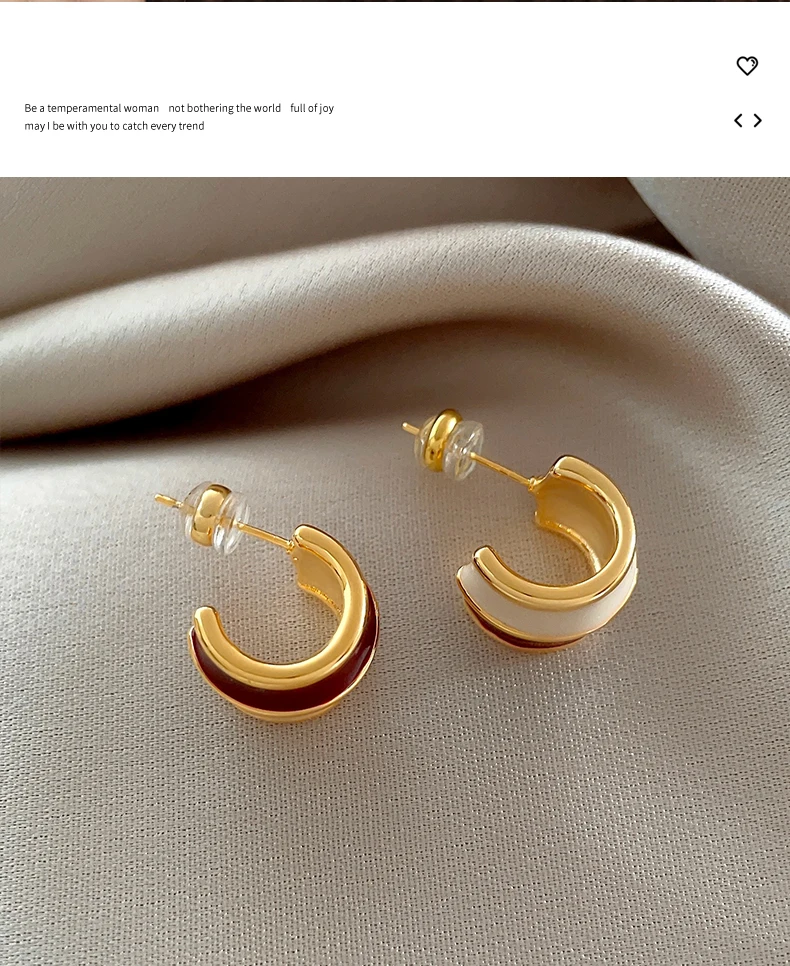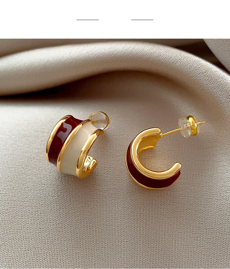 2024 Vintage style Wine red Contrasting Half Circle Enamel Earrings For Womens Elegant Temperament Jewelry Christmas Accessorise 2024 Vintage style Wine red Contrasting Half Circle Enamel Earrings For Womens Elegant Temperament Jewelry Christmas Accessorise