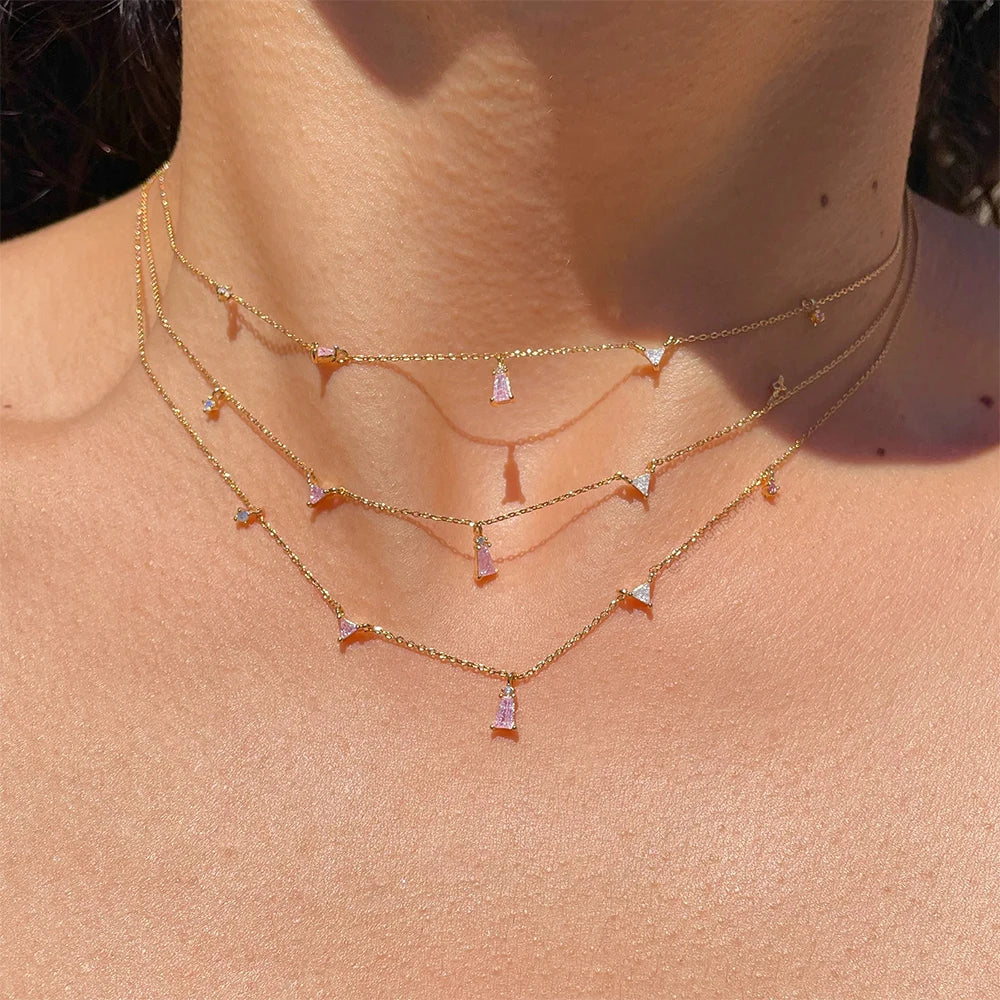 Aide 925 Sterling Silver Unique Sparkling Clear Zircon Rivet Spike Charm Necklaces For Women Rock Punk Jewelry Stackable Choker