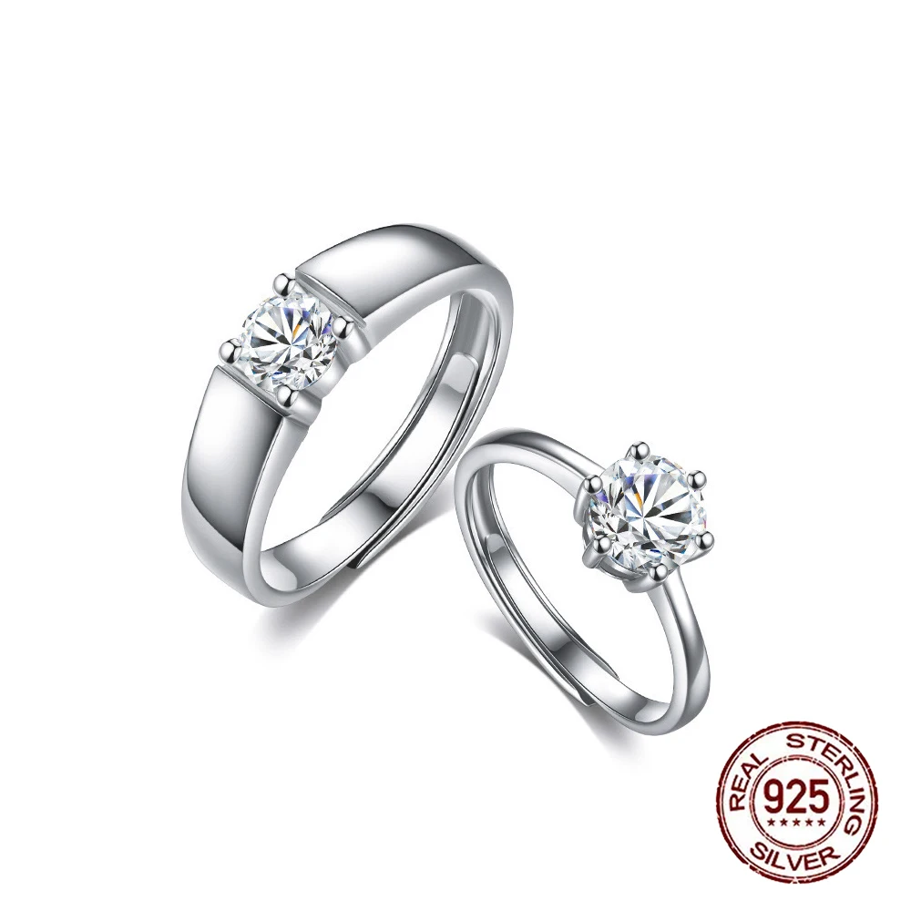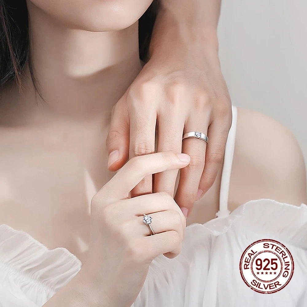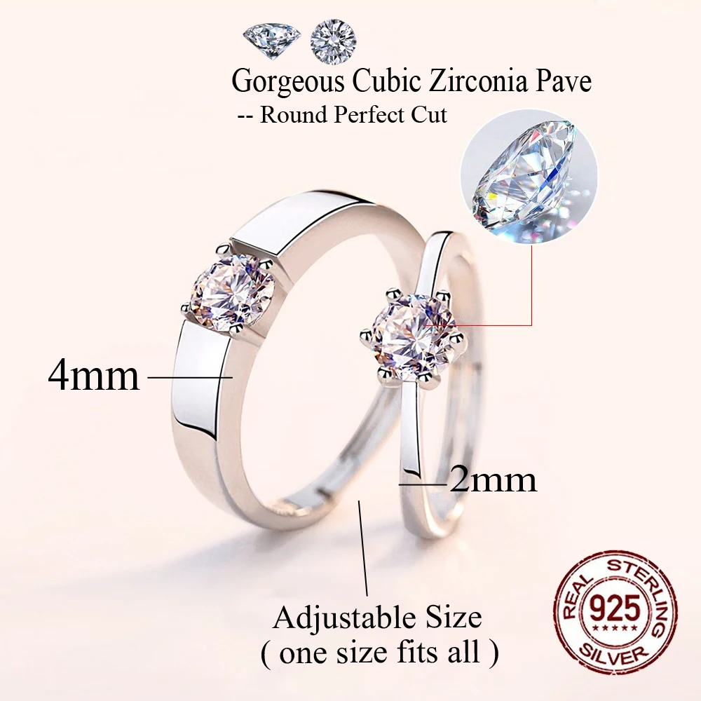 Dazzling Cubic Zircon 925 Sterling Silver Adjustable Couples Promise Ring for Women Men Weddings and Engagement Finger Jewelry