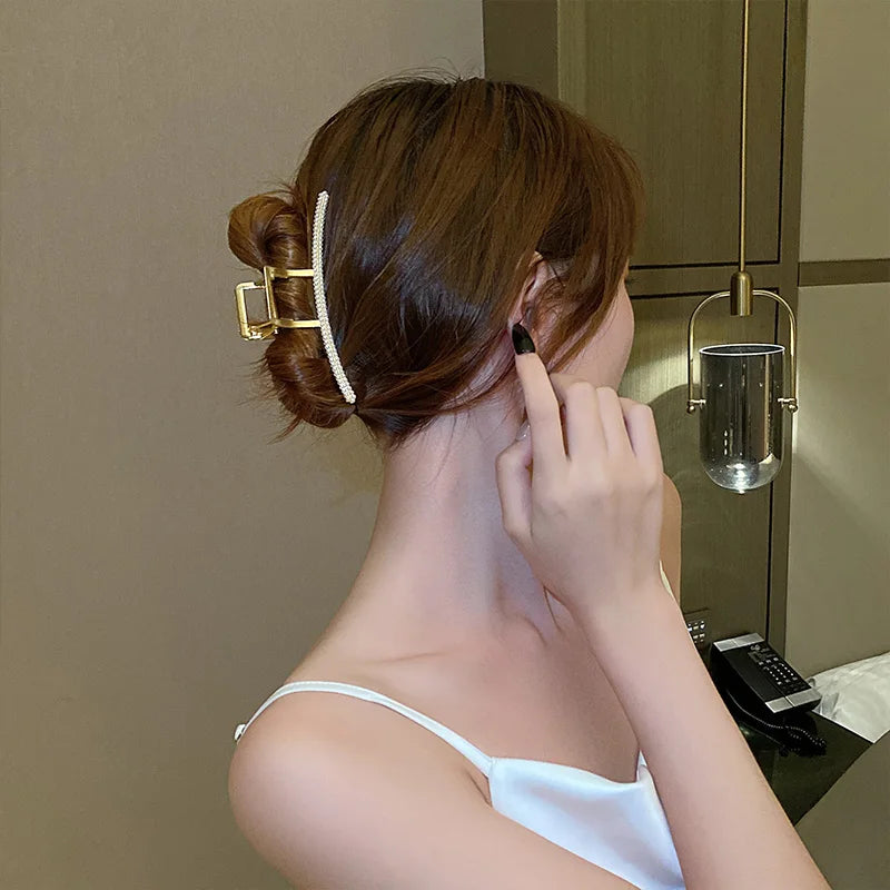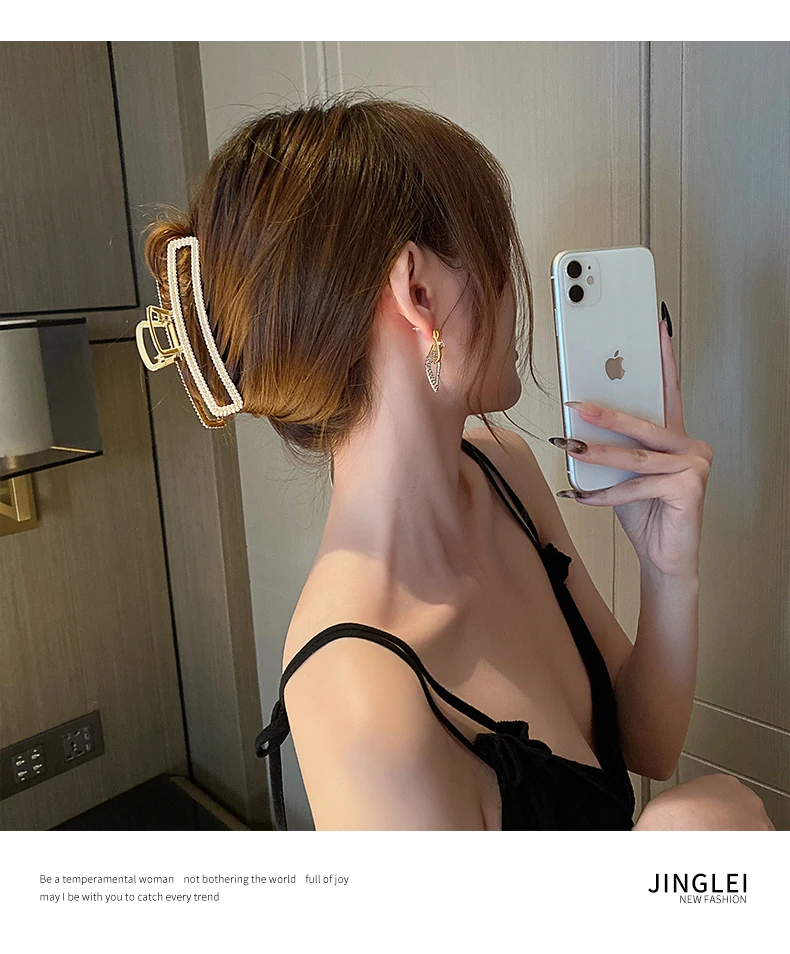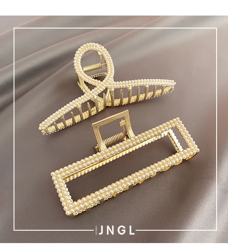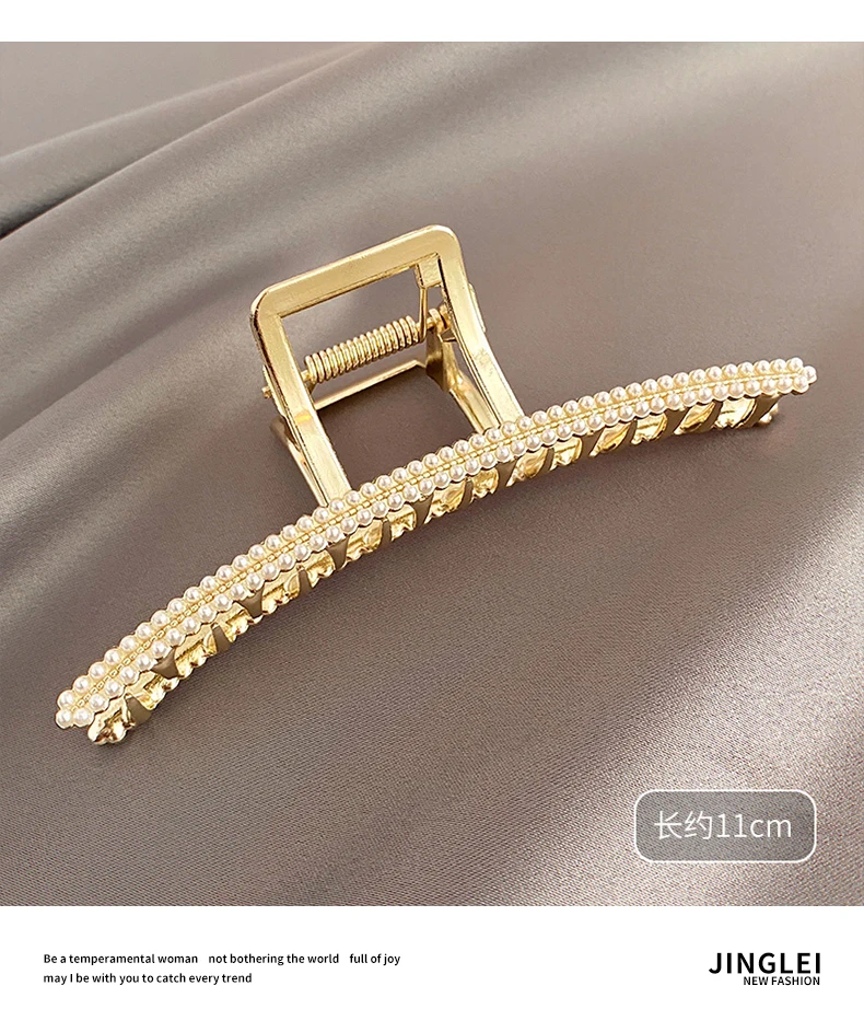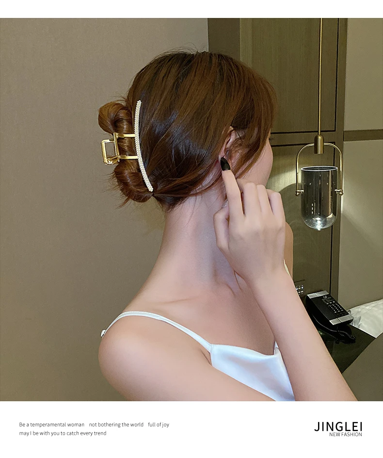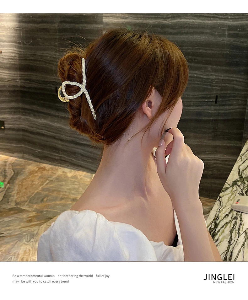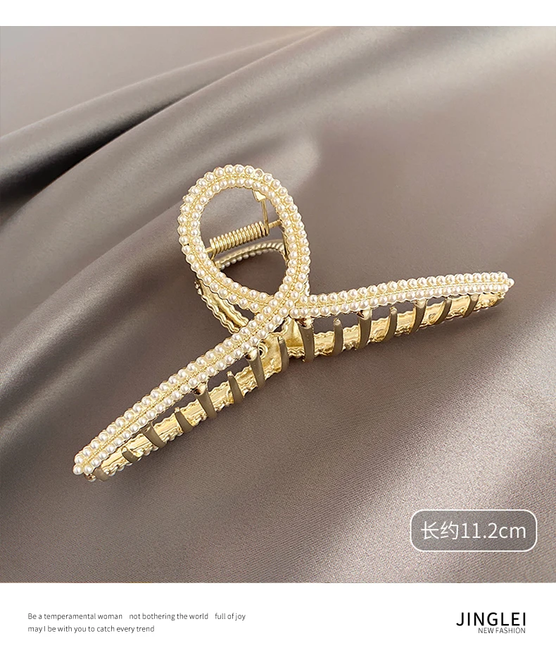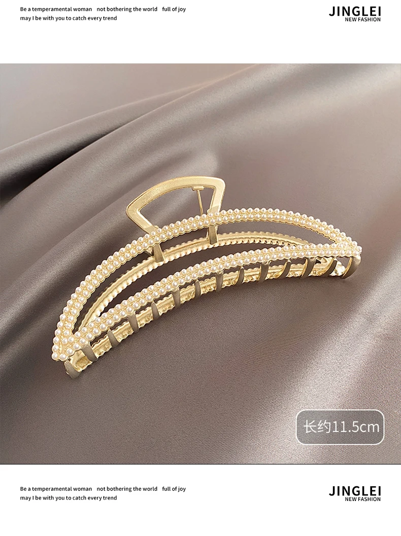 • Metal Pearl Clip Women's Summer Metal Hairpin Back Of Head Large Shark Clip Temperament High Sense Binding Headdress For Girls